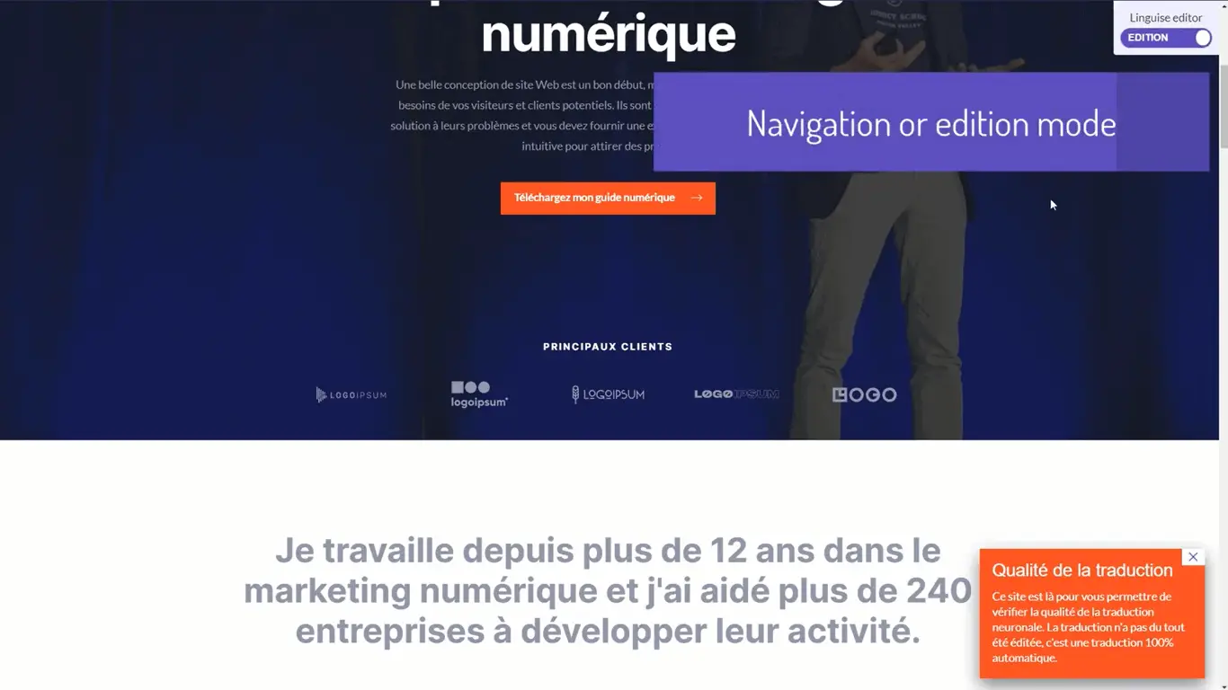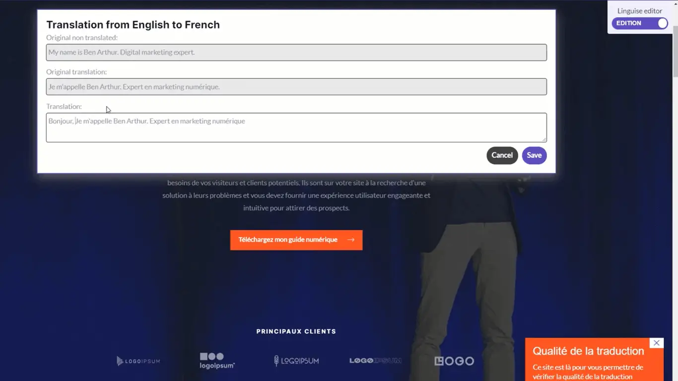 Linguise to coś więcej niż tylko usługa tłumaczeniowa. Oprócz tłumaczenia komponentów strony internetowej w interfejsie użytkownika, tłumaczy również elementy składające się na stronę internetową na zapleczu, w tym wbudowany kod HTML i CSS (pogrubione teksty lub hiperłącza).