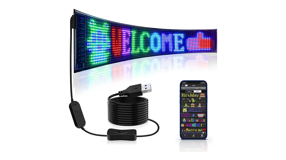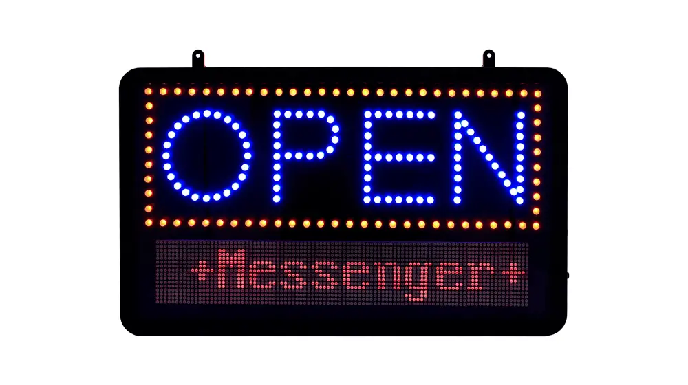 Wyposażony w cztery dynamiczne funkcje wyświetlania (statyczny, przewijany, migający i fazowy), ten znak ma przyciągać uwagę przechodniów, upewniając się, że wiedzą, kiedy Twoja firma jest otwarta.