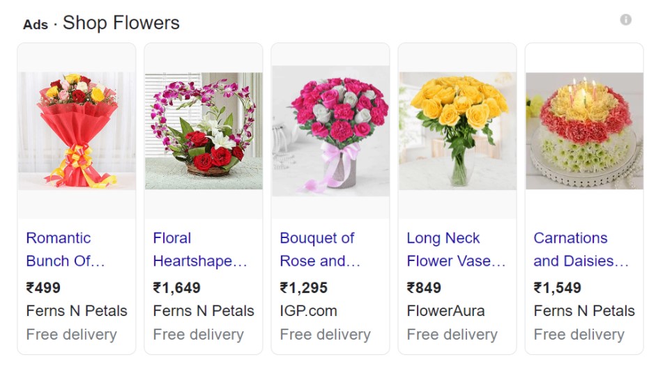 Reklamy produktowe pojawiają się na stronach wyników wyszukiwania. Możesz wyświetlać swoje produkty wraz ze szczegółami, takimi jak tytuł, cena, nazwa sklepu itp.