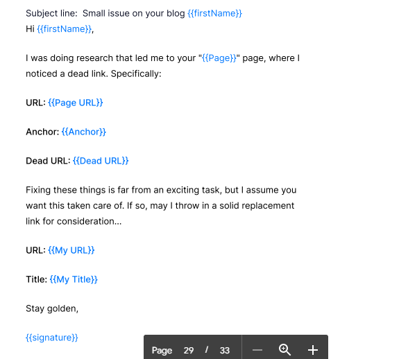 I tutaj na ratunek przychodzą zepsute szablony linków. Jeśli zasygnalizujesz, że link do potencjalnego potencjalnego klienta jest uszkodzony i zaoferujesz zamiennik wysokiej jakości, stworzysz dla niego wartość.