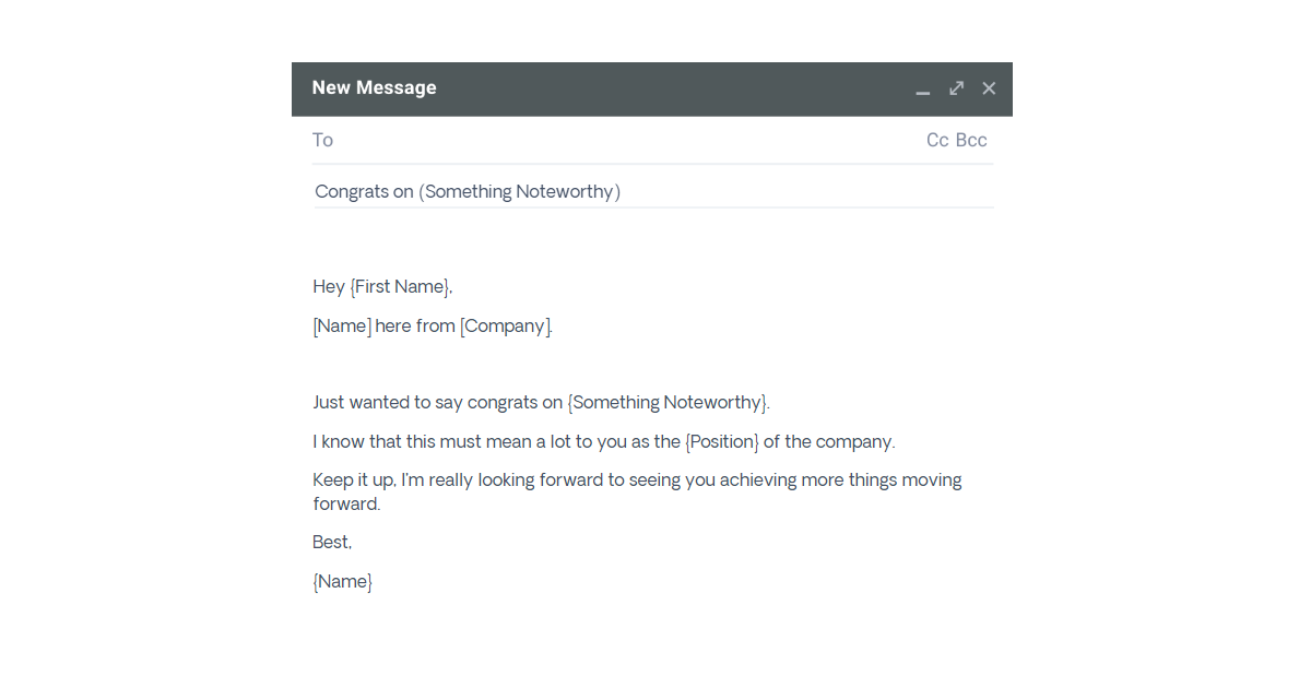 Szablony gratulacji są świetne, ponieważ mogą pełnić rolę inicjatorów konwersacji. Ponadto zapewniają uznanie, ale także to, że podążasz za czyjąś pracą, co jest dobrą rzeczą, gdy chcesz się połączyć - spotkasz się z autentycznością.