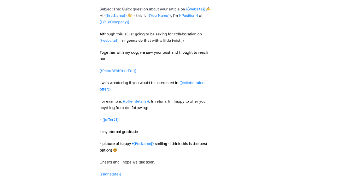 Te szablony są również krokiem 4 w tym, co musisz uwzględnić podczas pisania wiadomości e-mail o zasięgu PR.