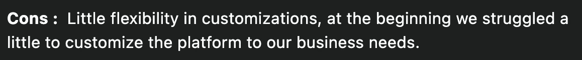 Jednak w oprogramowaniu brakuje funkcji dostosowywania, które nie pozwalają na tworzenie markowego doświadczenia dla klientów. W oprogramowaniu brakuje również funkcji, które mogą ułatwić skalowanie operacji.