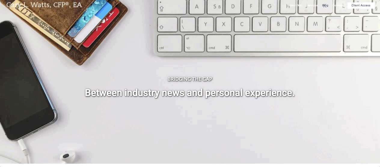 Po pierwsze, upewnij się, że masz sekcję bloga na swojej stronie doradcy. Jest to niezbędne, aby przyciągnąć ruch do Twojej witryny, zwiększyć swoją obecność w Internecie i poprawić rankingi SEO. Klient Twenty Over Ten, Gary L. Watts, CFP, EA, prowadzi zaktualizowaną sekcję bloga, aby pomóc swoim klientom uzyskać informacje, odpowiedzieć na pytania i tematy, które mogą mieć, oraz zwiększyć ich ruch i obecność w Internecie.