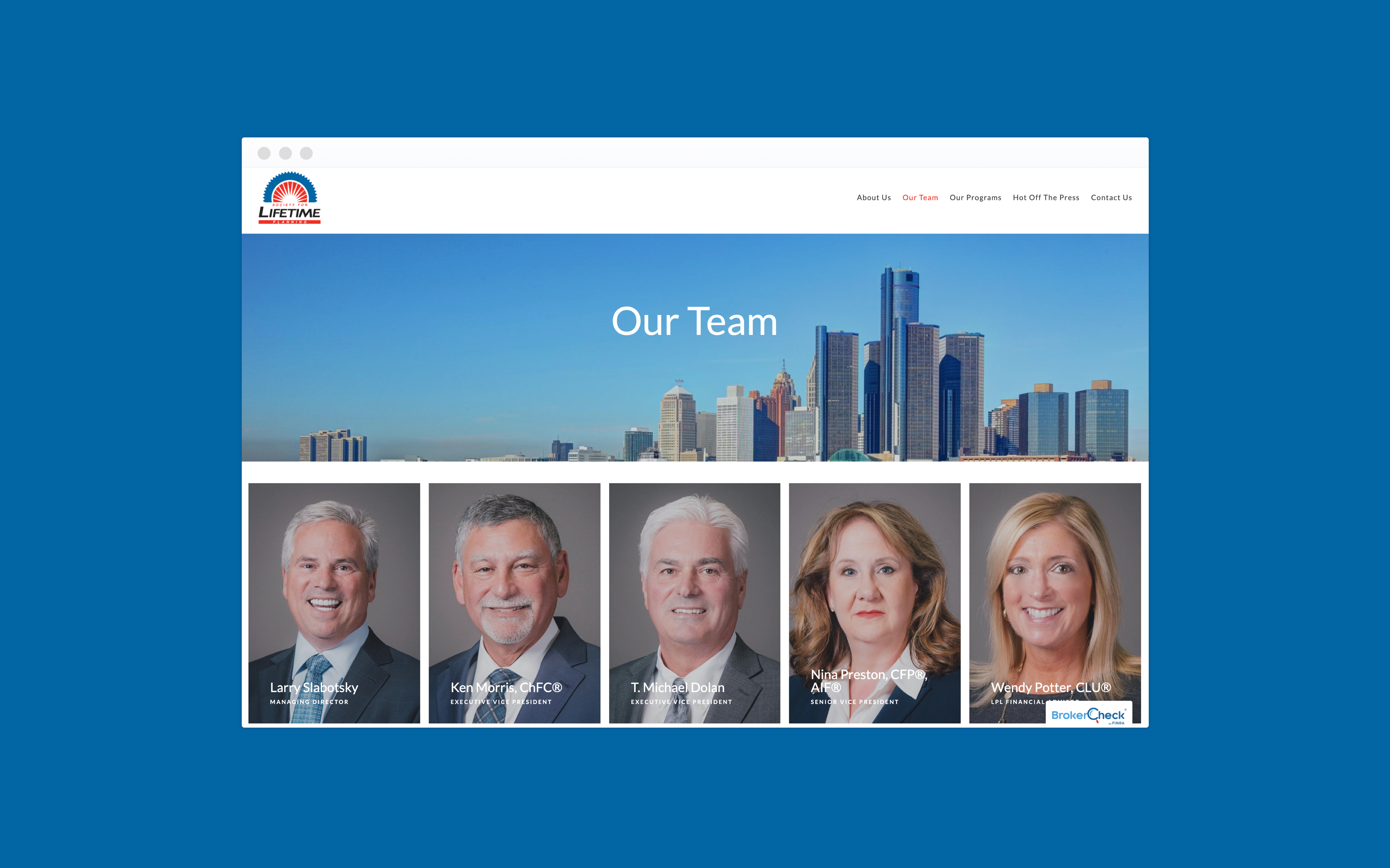 Jednym z najlepszych przykładów jest strona ich zespołu. Dzisiaj odwiedzający witrynę The Society for Lifetime Planning może szybko i łatwo znaleźć członka zespołu, którego szuka, wraz z życiorysami, zdjęciami w głowę, certyfikatami i bezpośrednimi danymi kontaktowymi, aby się z nim skontaktować.