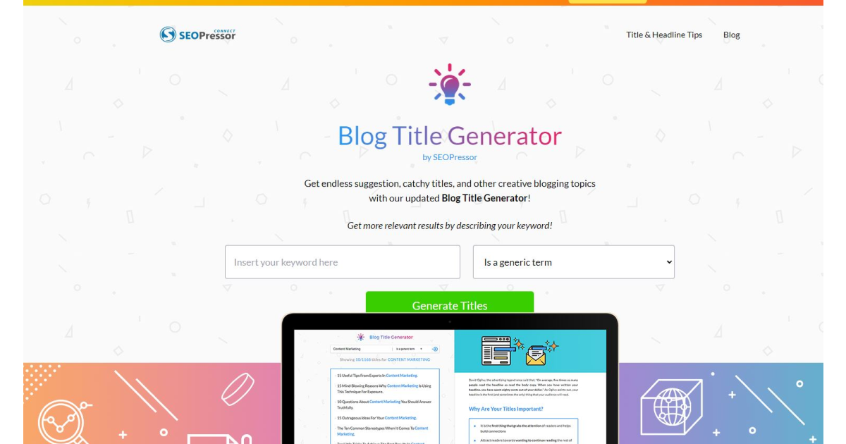 O gerador de títulos de blog SEOPressor pode facilitar sua produção de títulos de alta qualidade.