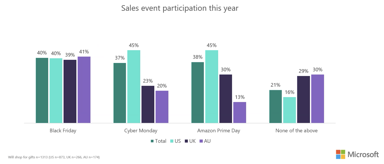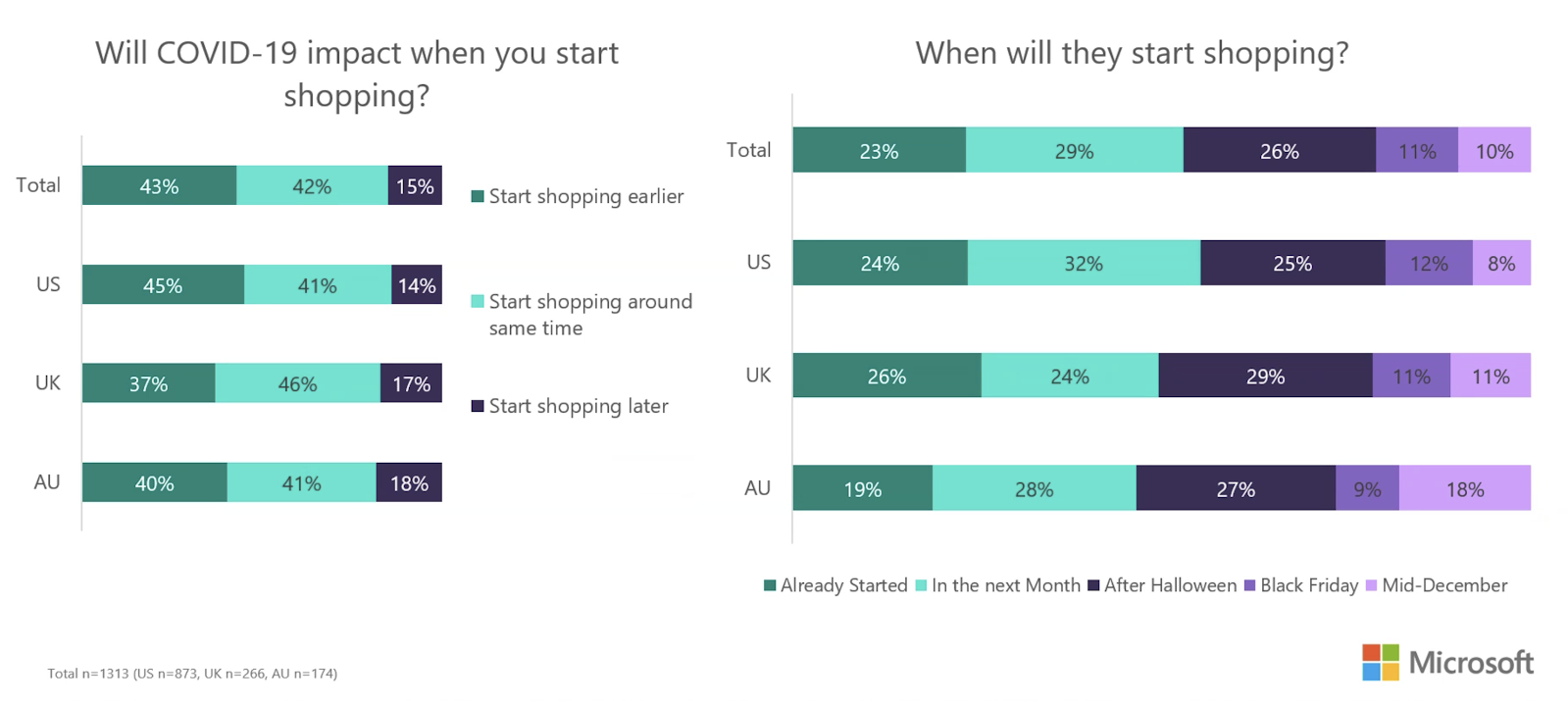 As compras de fim de ano começaram no início deste ano e isso é apoiado pela pesquisa da Microsoft que mostra que mais de 40% dos compradores pretendem começar no início deste ano. Por conta da pandemia, muitos varejistas foram muito agressivos com as ofertas ao longo deste ano e isso pode ter redefinido algumas expectativas com os consumidores. Agora podemos ver os negócios durarem mais e aparecerem com mais frequência do que antes.