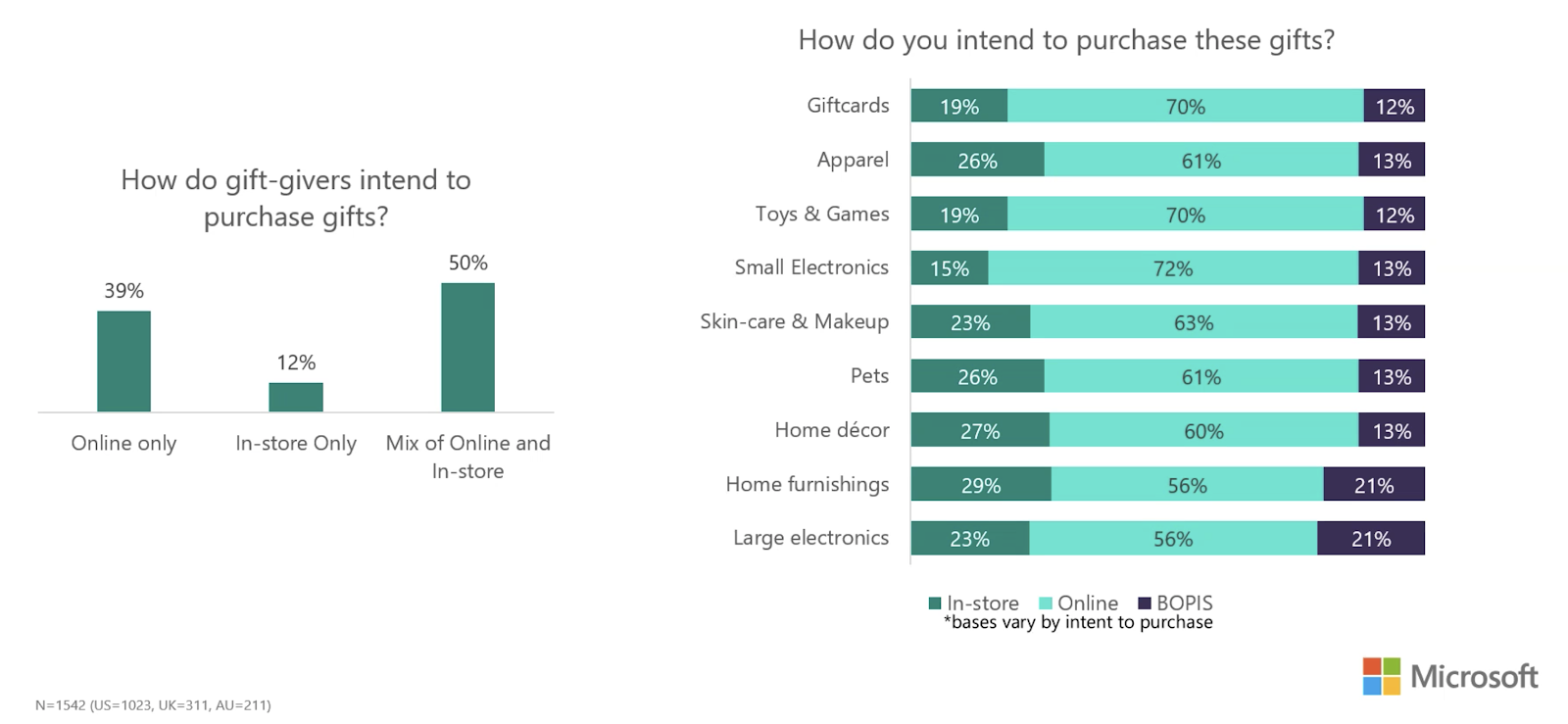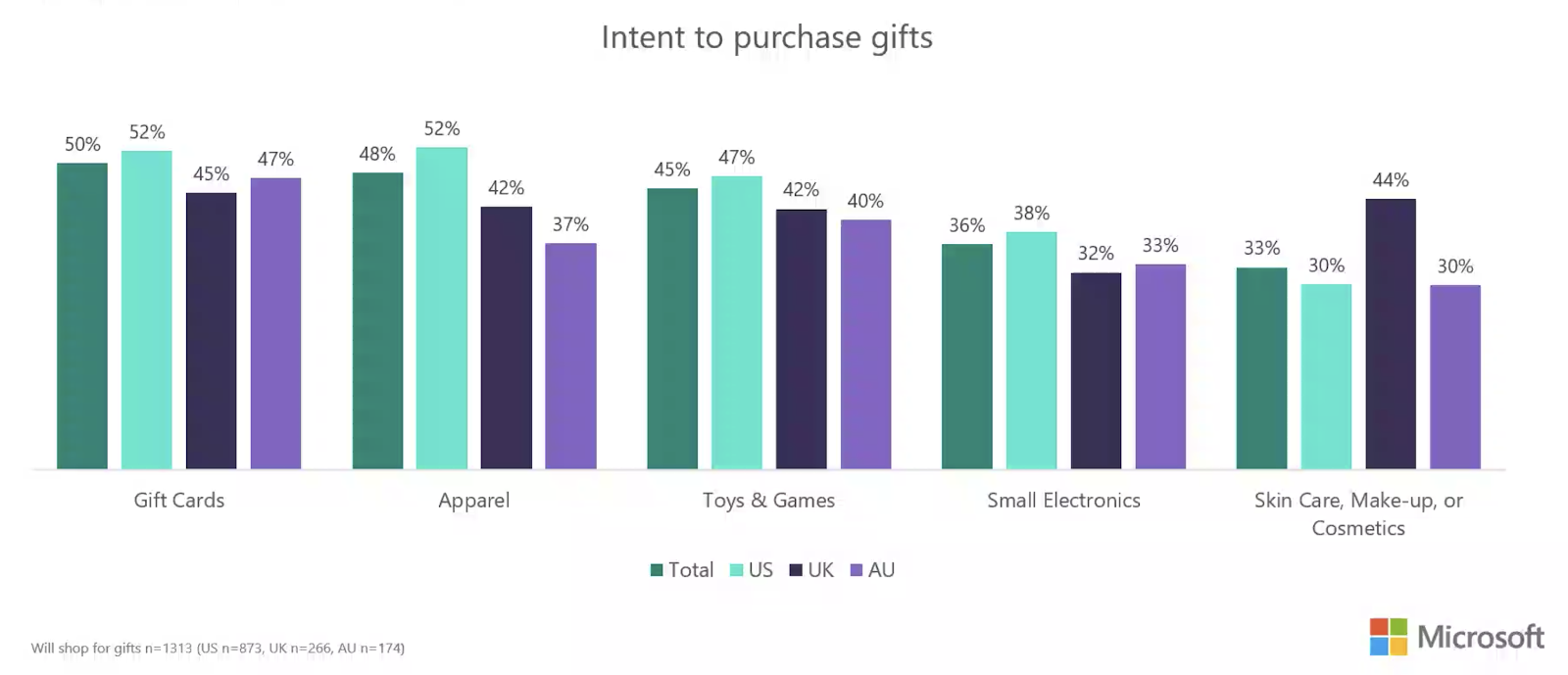 A Microsoft diz que os cartões-presente estão crescendo mais rápido do que outras categorias este ano. Eles são uma solução engenhosa para um grande problema de férias para os consumidores – escolher um presente e entregá-lo no prazo, mesmo para procrastinadores que esperaram demais! Eles podem até ajudar pequenas empresas a comercializar seus produtos e obter estabilidade na temporada de festas, trazendo receita constante com investimento mínimo. Os consumidores estão comprando cartões-presente para apoiar seus negócios locais na pandemia.