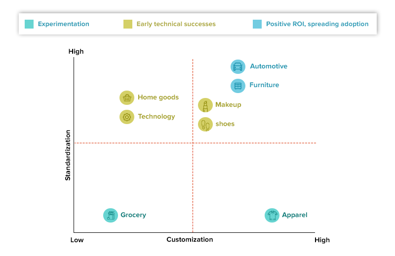 Mais de 50% dos usuários de smartphones têm AR em seus telefones. Hoje, fazer um aplicativo baseado em AR é muito conveniente. O custo de integrar AR ao varejo depende da escala em que um varejista deseja que a presença da marca seja sentida. Como você planeja dar um elemento pessoal depende de seu intelecto, inovação e compreensão do mercado.