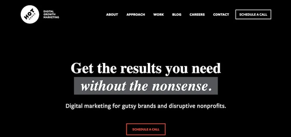A Digital Hot Sauce é uma agência digital com uma abordagem prática ao marketing digital. Eles ajudam marcas fortes e organizações sem fins lucrativos disruptivas a obter resultados. Há quatro coisas principais com as quais o Digital Hot Sauce ajuda: aumentar as transações e a receita, aumentar o tráfego, aumentar os leads, ter uma classificação mais alta no Google e aumentar as bases de doações.