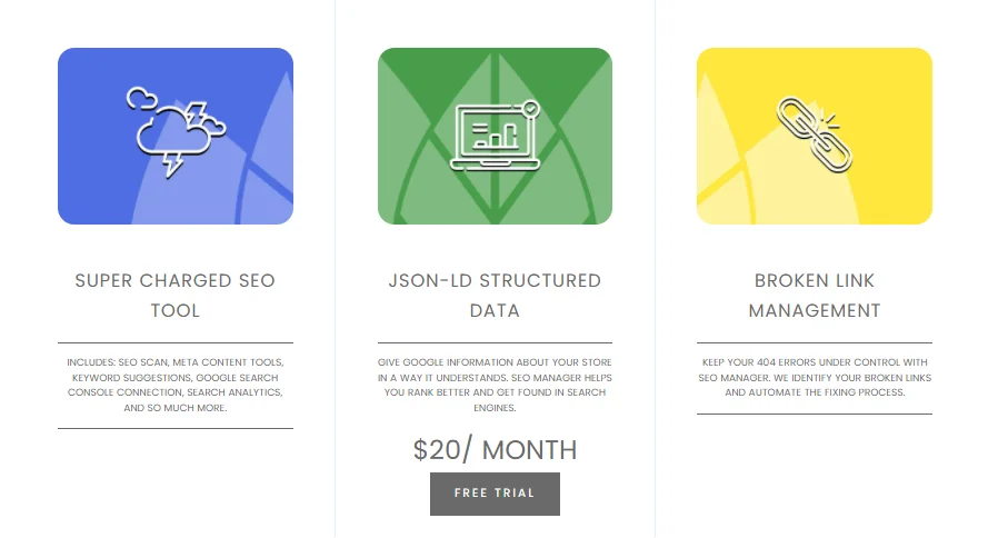 Seu preço é muito inferior ao SEO Doctor ou SEO Booster porque oferece menos recursos. Assim, este aplicativo seria uma ótima opção se você precisar apenas de recursos básicos de SEO com um orçamento pequeno . Além disso, se você estiver administrando uma loja em vários idiomas, definitivamente deve escolher este um dos melhores aplicativos de SEO da Shopify.