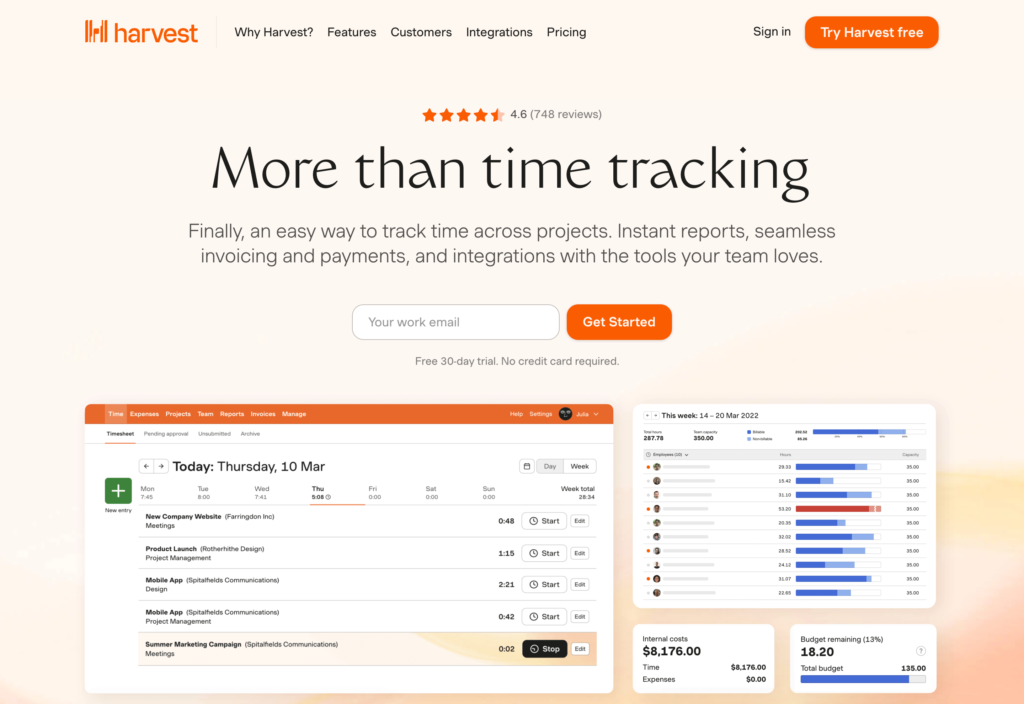 O Toggl Track tem mais de 100 integrações, é compatível com o Regulamento Geral de Proteção de Dados (GDPR) e permite gerar relatórios personalizados e visualizar análises. Você também terá acesso a vários recursos de faturamento, orçamento, relatórios e folha de pagamento.