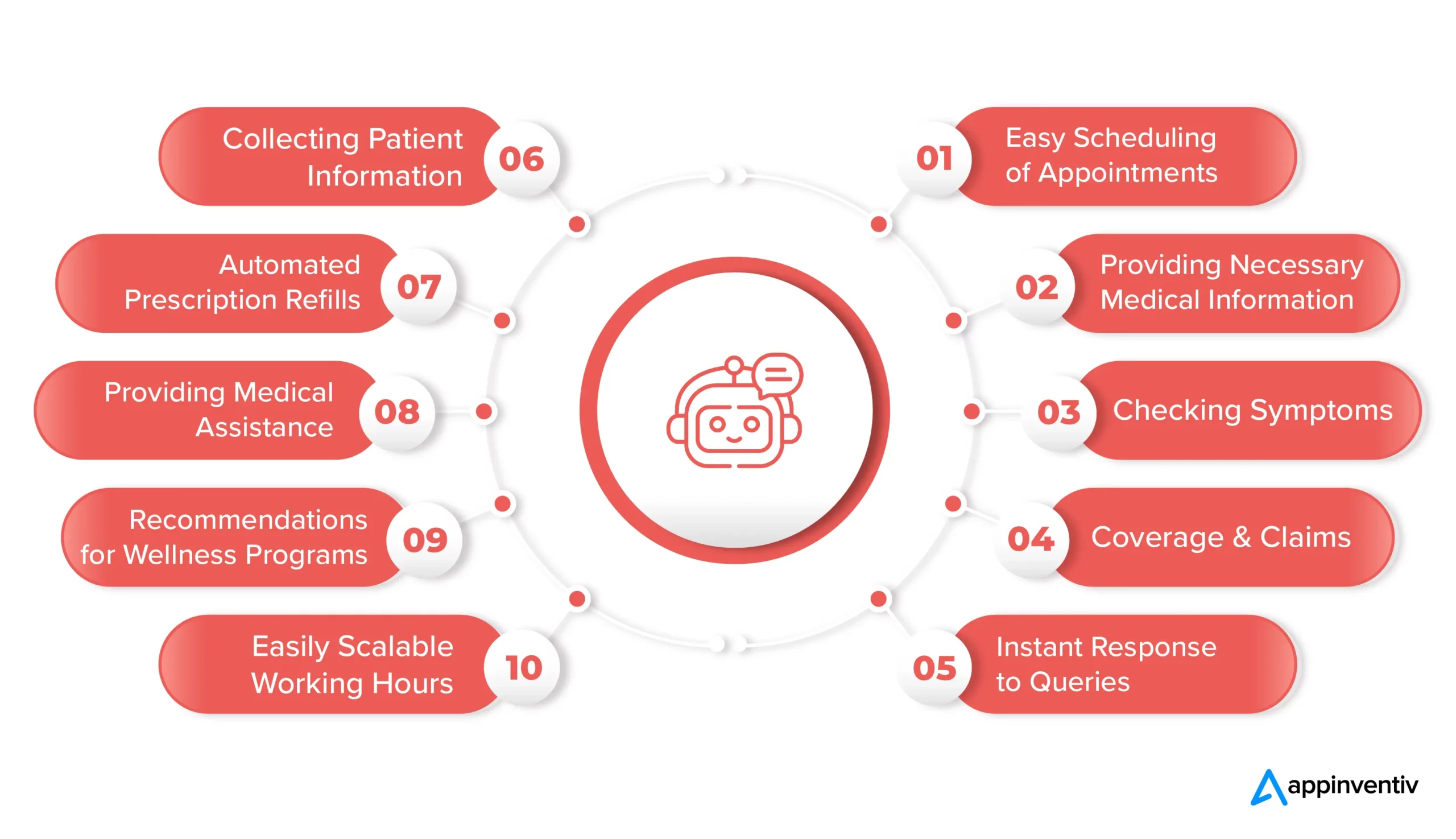 Ao automatizar toda a rotina de um representante médico e as responsabilidades de nível inferior, os chatbots no setor de saúde economizam muito tempo para os profissionais. Mas não é isso. Eles coletam e armazenam dados do paciente, garantem sua criptografia, permitem o monitoramento do paciente, oferecem diversos suportes informativos e garantem assistência médica em maior escala. Os chatbots de saúde, em geral, estão transformando o setor de saúde.