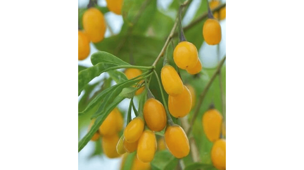 As bagas de goji, também conhecidas como wolfberries, são plantas perenes resistentes que vêm de um arbusto nativo da China. Na verdade, as bagas de goji têm sido usadas em toda a Ásia para tratar problemas de saúde comuns, como pressão alta, fadiga, febre e diabetes. Com o tempo, estudos descobriram que as bagas de goji são repletas de vitaminas e nutrientes, e também são deliciosas! São geralmente bagas vermelhas, mas também existem variedades de cores diferentes. E são bastante fáceis de cultivar – toleram uma variedade de solos, prosperando particularmente nas zonas 5-9.