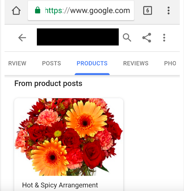 Em particular, os novos produtos GMB e coleções de produtos ajudam a controlar sua pegada móvel. Por exemplo, no celular, a Coleção de produtos aparece na guia Produtos nas publicações do produto. Além disso, quando você clica na coleção, ela é exibida nessa coleção e, presumivelmente, nos produtos adicionados a ela. Conforme observado pelo membro do Fórum de pesquisa local, Cordell Crowley, na captura de tela abaixo.