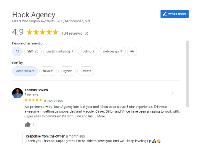 - Responda às avaliações dos clientes : interaja com seus clientes respondendo às avaliações positivas e negativas. Isso mostra que você valoriza o feedback deles e está comprometido em fornecer um serviço excelente.
