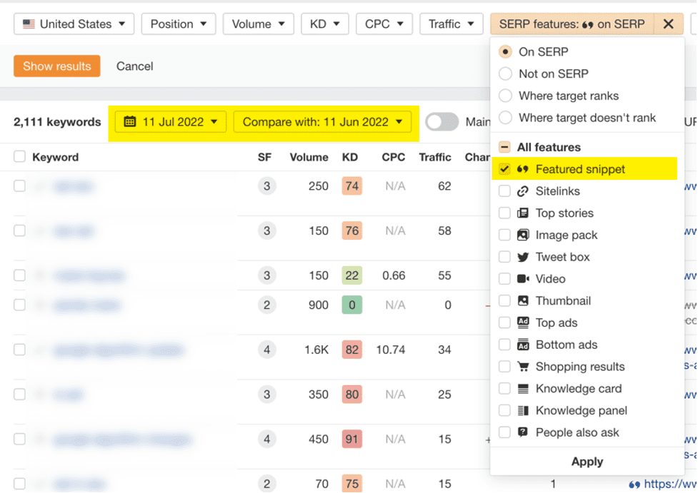 Tão importante saber é se o snippet em destaque foi substituído. Se não foi substituído, o Google está aprendendo com a análise de cliques que os trechos em destaque não funcionam para essa consulta, se foi substituído, a estratégia para a consulta é alterada.