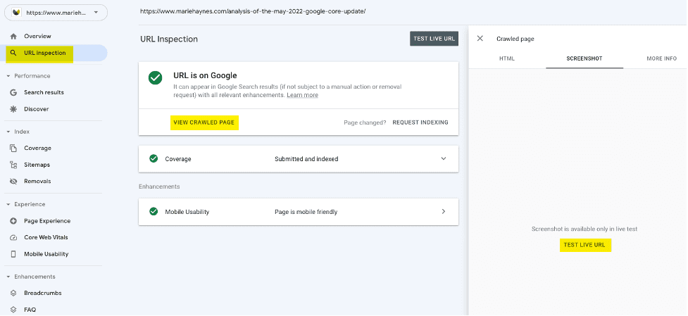 Se você tiver páginas específicas com dificuldade para indexar ou classificar, pode ser útil inspecionar essas páginas no Google Search Console.