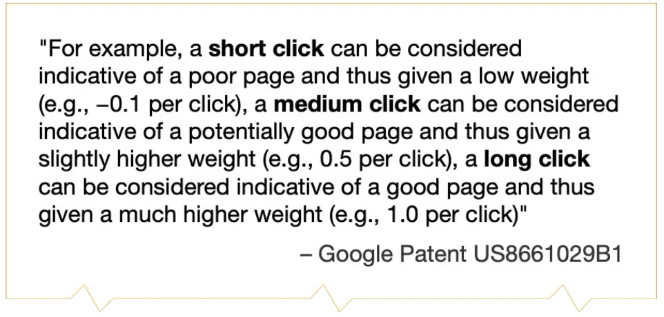 Cyrus explica como o Google tem uma patente que descreve que a quantidade de tempo que os usuários gastam interagindo com uma página pode ser considerada um sinal de qualidade.