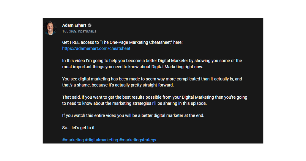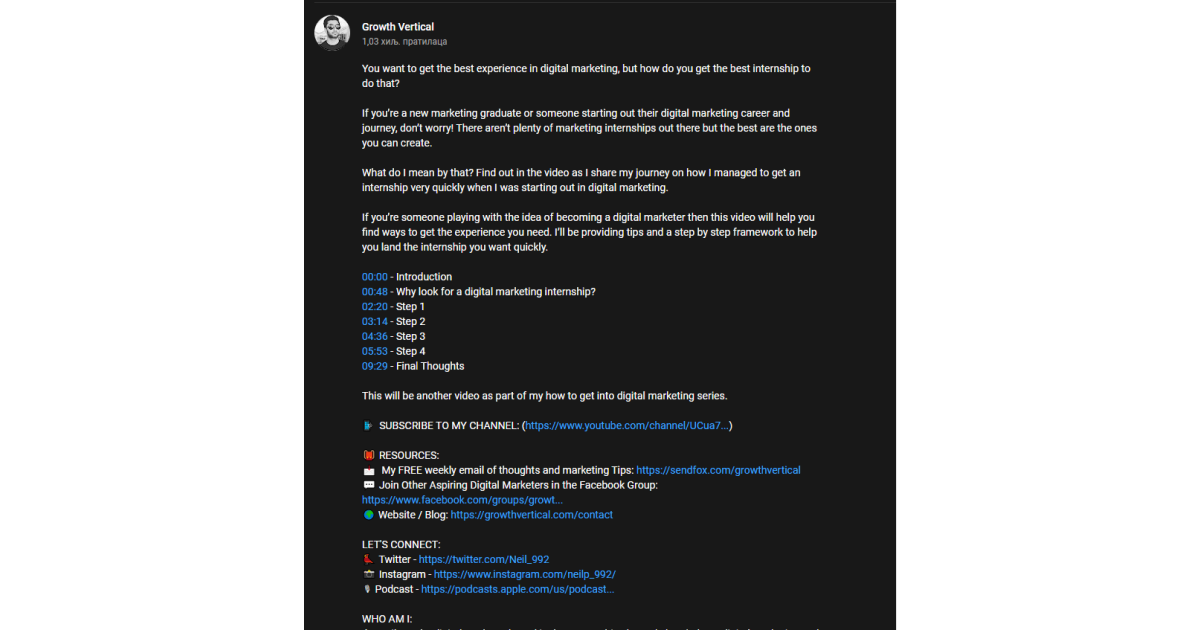 Um CTA no final da descrição é uma ótima maneira de informar seus espectadores onde eles podem saber mais ou entrar em contato com você.
