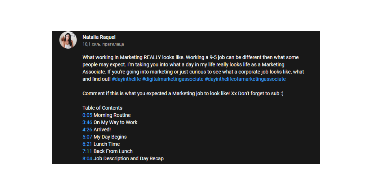 A descrição tem várias linhas descrevendo o que os espectadores podem esperar e o que sentirão depois de assistir ao vídeo.