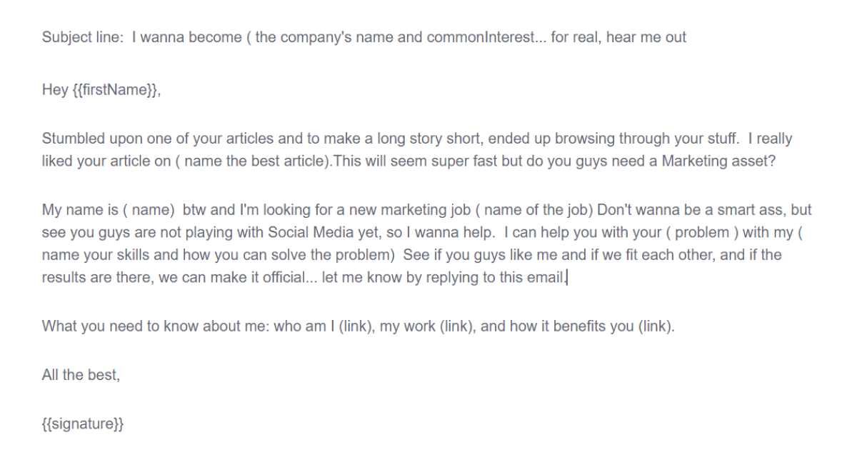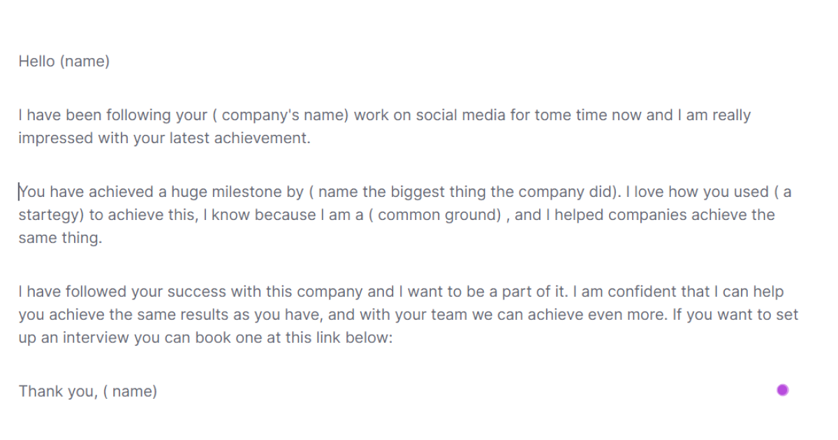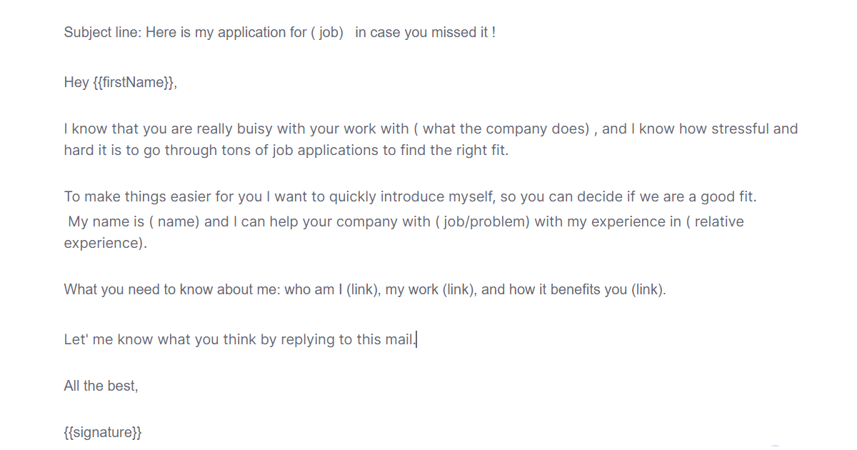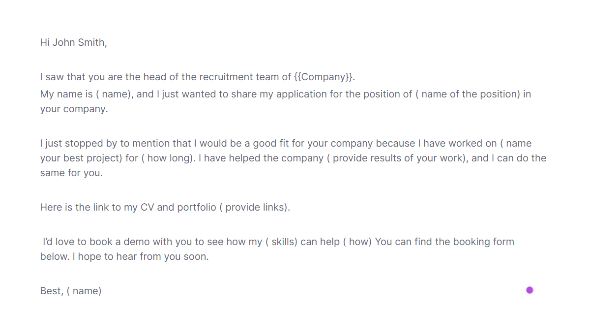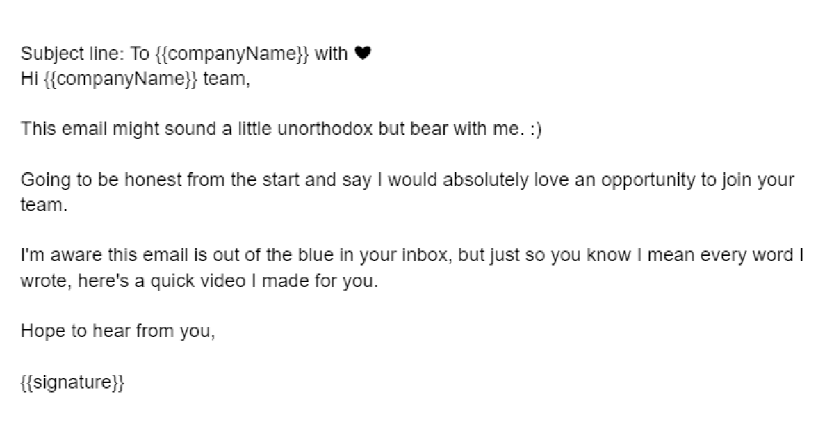 A menos que você use seu cold email para se apresentar de outra maneira, como um vídeo personalizado para o recrutador.