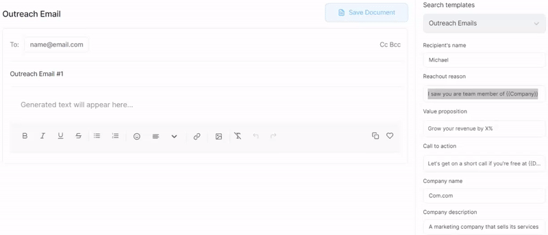 Com TextCortex, você pode economizar até 80% do seu tempo de escrita, e tudo o que você precisa fazer é escolher o modelo e inserir palavras-chave.