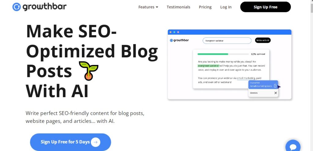 Aqui, discutiremos alguns dos principais recursos do GrowthBar que o tornam especial para escritores e profissionais de marketing digital.