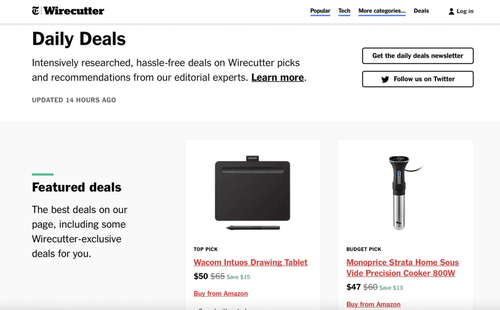 Por exemplo, esta página de destino mostra ofertas de produtos e usa links de afiliados que direcionam os leitores a fazer compras na Amazon: