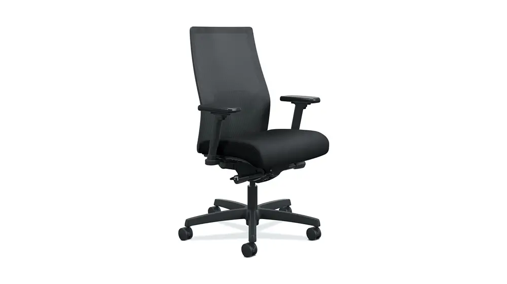 Vice-campeão: A cadeira de escritório ergonômica HON Ignition 2.0 combina reclinação de inclinação sincronizada avançada e suporte lombar ajustável, proporcionando conforto durante todo o dia para escritórios domésticos e espaços de trabalho profissionais. O respirável 4-way stretch mesh back melhora o fluxo de ar e oferece resistência superior em comparação com as cadeiras de malha tradicionais.