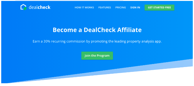| Programa de afiliados imobiliários Dealcheck.io | 30% | 90 dias |