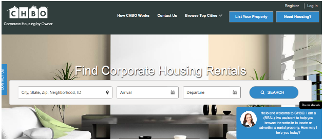 Proprietários e gerentes de propriedades corporativas podem alugar suas casas ou quartos totalmente mobiliados para viajantes e veranistas com o Corporate Housing by Owner (CHBO). O site oferece ferramentas de marketing e gestão para os proprietários que fazem uma listagem de imóveis.