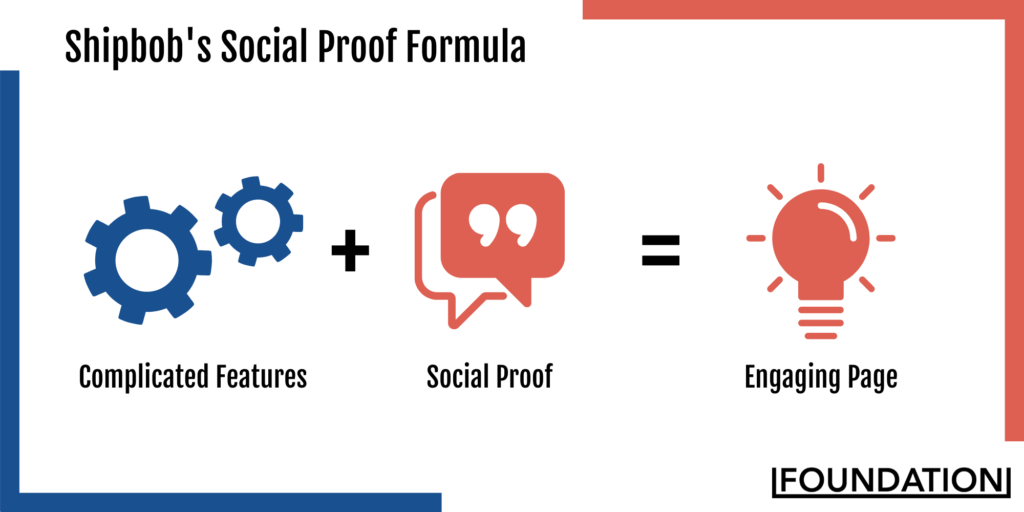 A fórmula de prova social do ShipBob ajuda a marca a estabelecer uma poderosa conexão emocional com seus clientes em todas as etapas do funil de vendas: