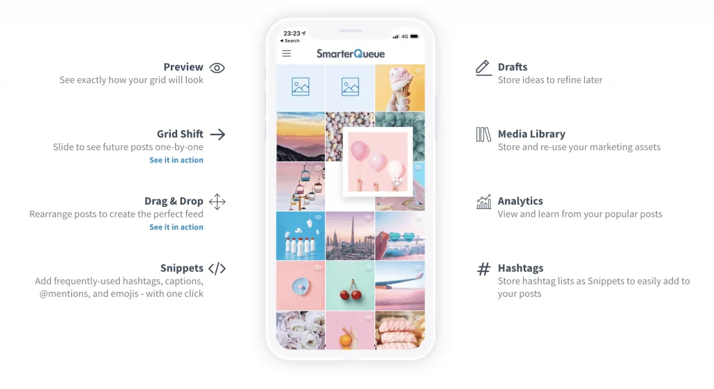 Ele tem uma fila separada e um plano de postagem que ajudará a reduzir qualquer tempo necessário de sua parte. Ele permite que você automatize seu conteúdo, para que você não precise se preocupar com o que postar todos os dias!
