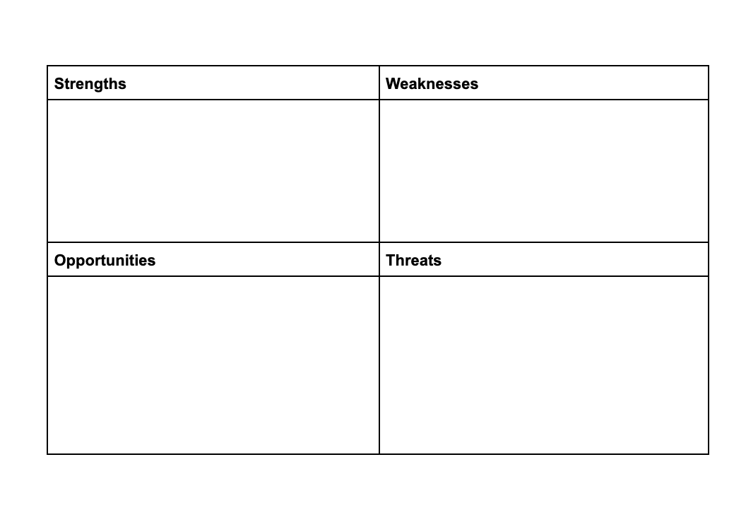 Para empresas com foco em melhorar um aspecto específico do negócio, como vendas ou marketing, aqui está um exemplo de análise SWOT de marketing que você pode usar como ponto de partida para sua própria análise SWOT.