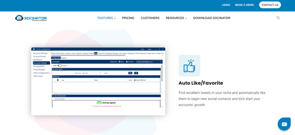 O Socinator é conhecido não apenas por seu Liker automático no Twitter, mas também aumentará seu engajamento e ROI no Twitter. O que essa ferramenta vai te dar? Você pode seguir automaticamente, seguir de volta, curtir, comentar, retweetar, enviar mensagens automáticas, etc., entre muitos outros.