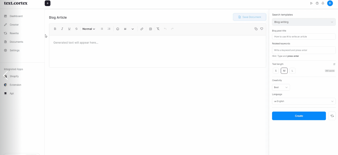 Por exemplo , você pode usar o gerador TextCortex para escrever uma postagem no blog para você: