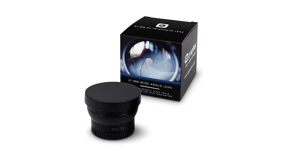 A lente grande angular iOgrapher 37mm é um acessório acessível e de alta qualidade para aprimorar sua fotografia móvel. A lente clipada permite a captura de paisagens amplas, panoramas detalhados e os mínimos detalhes com uma lente macro. É excelente para várias necessidades de fotografia e é simples de usar.