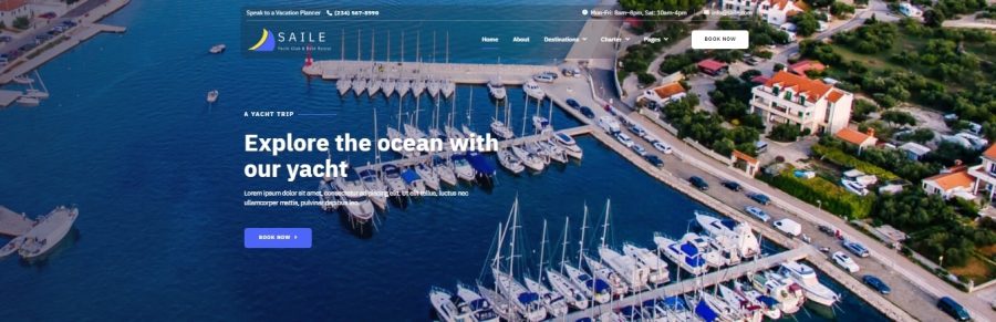A última entrada da lista é Saile Yacht. Este é um ótimo tema para colocar em um site que lida com aluguel de iates. Existem muitos recursos de qualidade no tema que farão com que seu site se destaque.