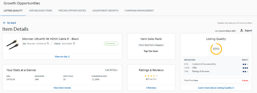 Un alt nivel de complexitate vine cu actualizarea conținutului dacă nu sunteți creatorul original al listării. Deoarece nu există un echivalent cu Registrul de mărci pentru Walmart Marketplace, poate fi o provocare să deții și să actualizezi conținutul produselor tale fără o interogare lungă de asistență a vânzătorului.