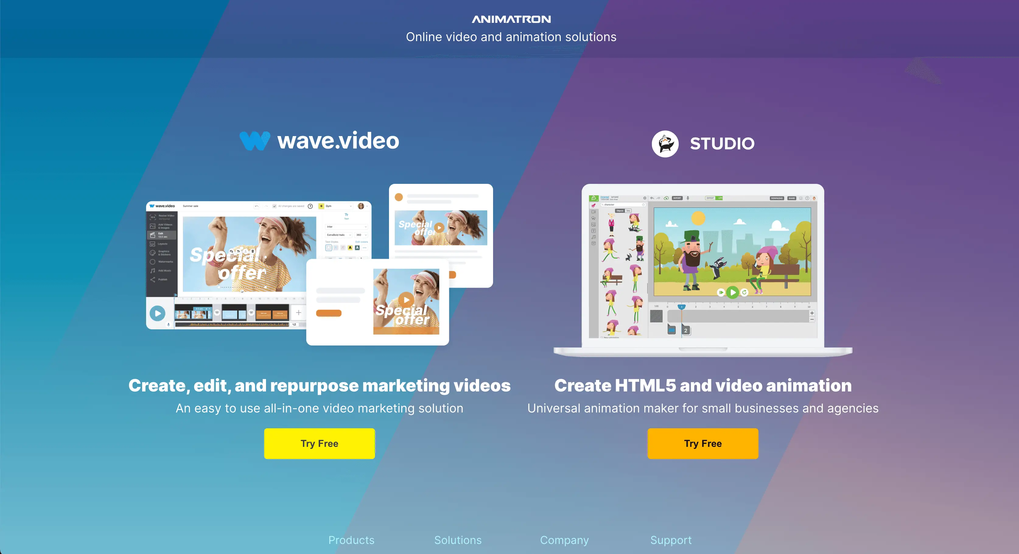 Animatron este un program online pentru crearea de videoclipuri explicative, animații și bannere HTML5. Oferă 500.000 de clipuri fără drepturi de autor, import de voce off, keyframing și o bibliotecă. În timp ce funcțiile avansate pot fi dificile, economisesc bani pe software scump.
