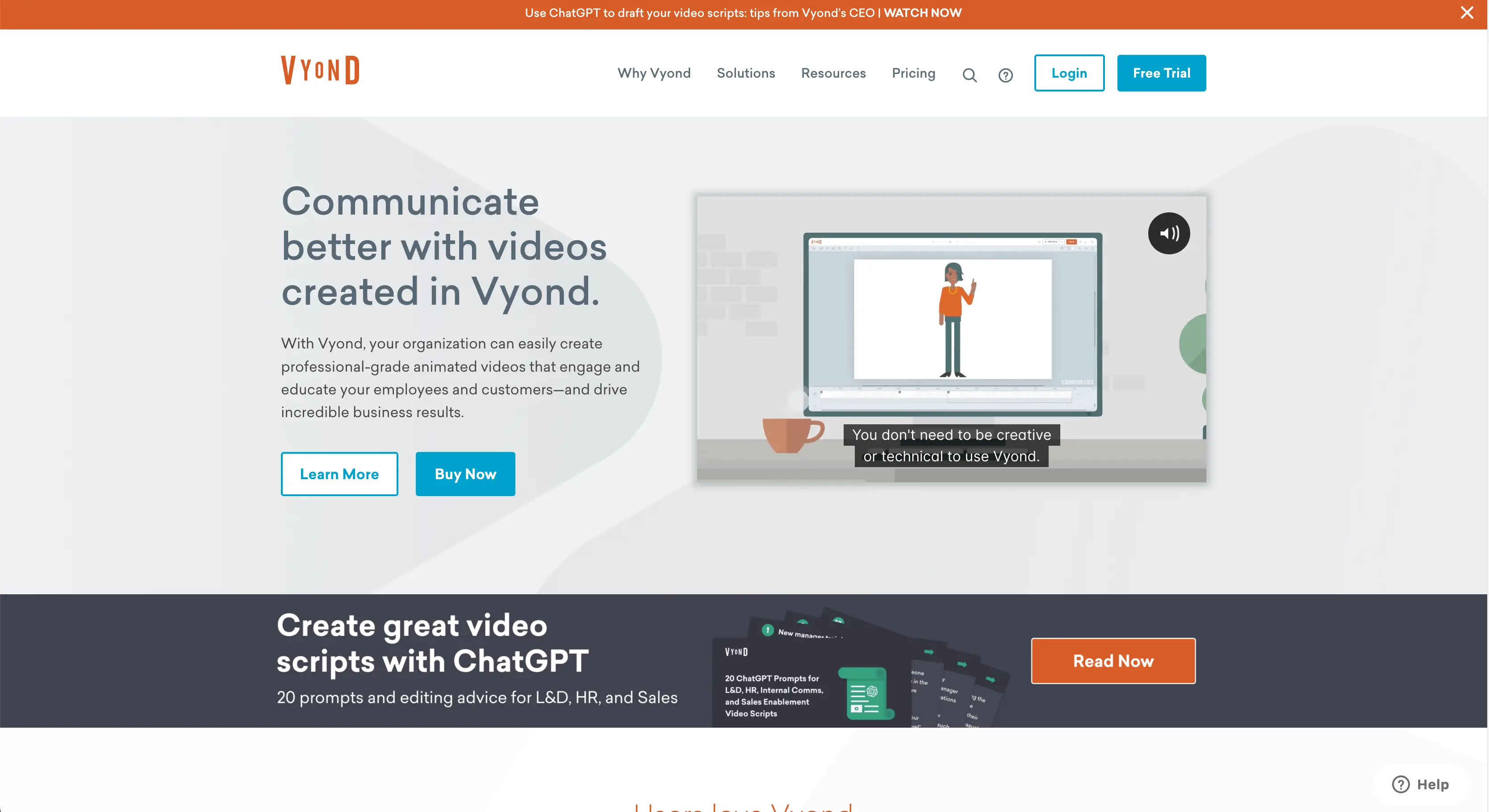 | 10. | Vyond | Șabloane profesionale, ușor de utilizat, caracteristici personalizabile | Prețuri mai mari decât alte soluții | Probă gratuită de 14 zile, planuri plătite disponibile |