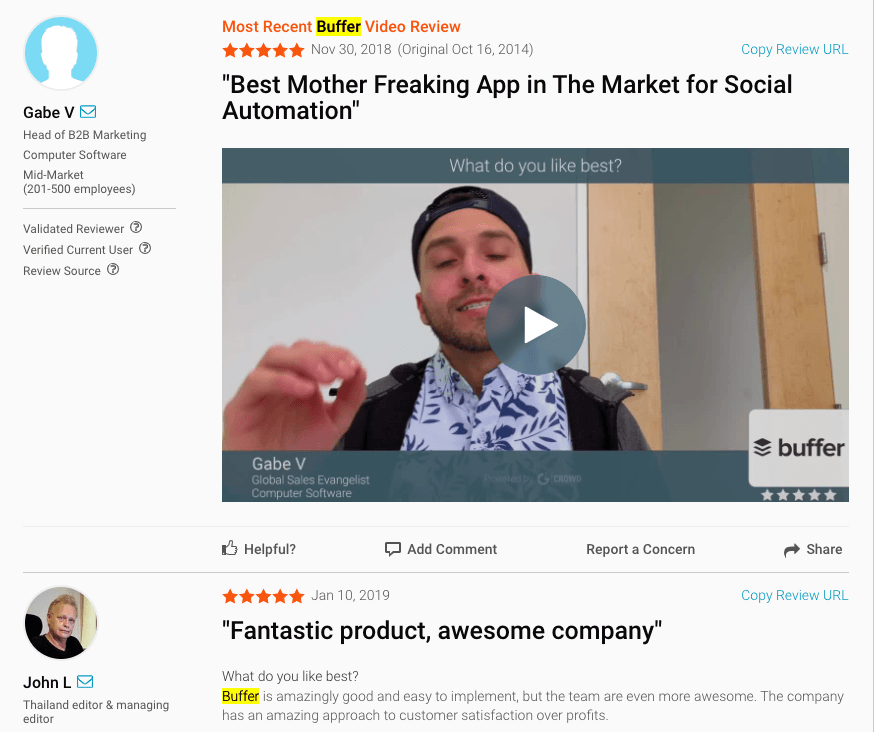 Așa cum verificați Yelp pentru a vedea ce cred oamenii despre un nou restaurant înainte de a face o rezervare, cumpărătorii B2B se uită la recenzii, mărturii și studii de caz pentru a vedea ce cred colegii lor înainte de a cumpăra produsul dvs.