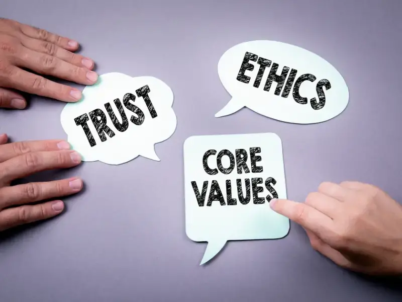 - Încorporați integritatea: abordați cu integritate toate tranzacțiile de afaceri, tranzacțiile de pe piață și angajamentele.