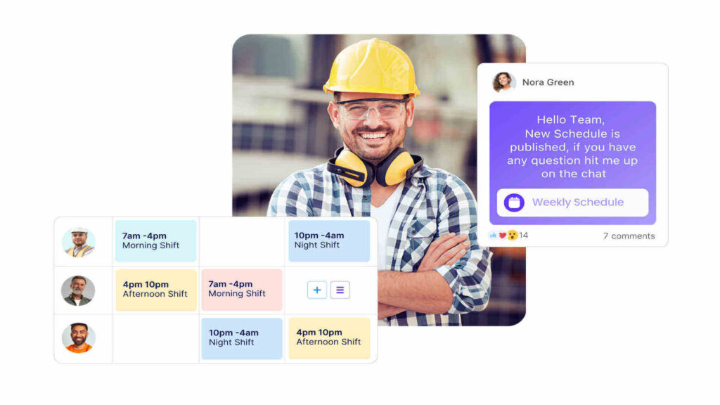 - Programarea angajaților: programați angajații în ture și asigurați-vă că fiecare proiect este acoperit.Connecteam, de exemplu, facilitează crearea de programe cu instrumentul său de programare drag-and-drop.