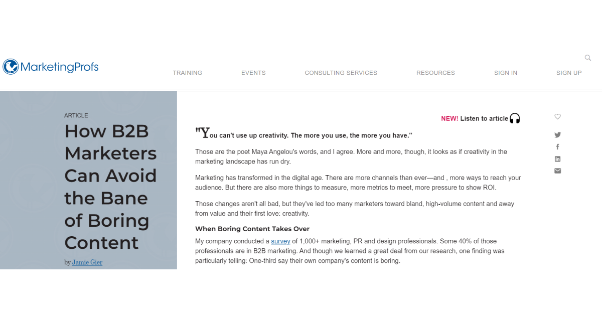 Articolele MarketingProfs se concentrează în principal pe sfaturi și trucuri pe care ar trebui să le cunoașteți înainte de a scrie pentru site-ul dvs. web.