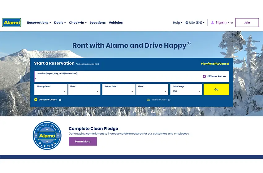 Alamo oferă tarife scăzute de închiriere de mașini la destinații populare din întreaga lume, cu o flotă de peste 150.000 de mașini care deservesc 15 milioane de călători anual. Este a treia companie de închiriere de mașini ca mărime din SUA.