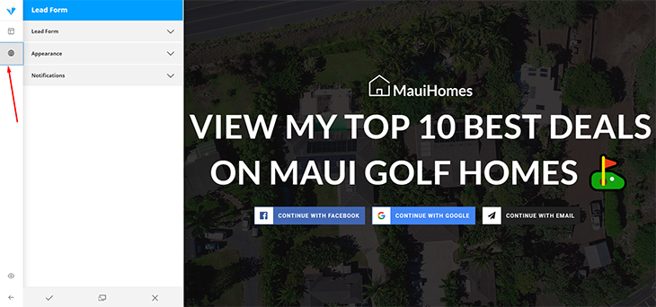 Aici veți vedea că puteți controla Aspectul (cum arată Formularul Lead), Setările de notificare (ce se întâmplă după ce se utilizează Formularul Lead) și setările generale ale Formularului Lead, care este ceea ce vrem, așa că faceți clic pe Formularul Lead pentru a dezvălui opțiuni acolo.