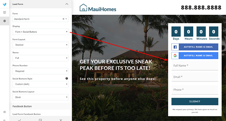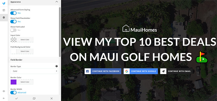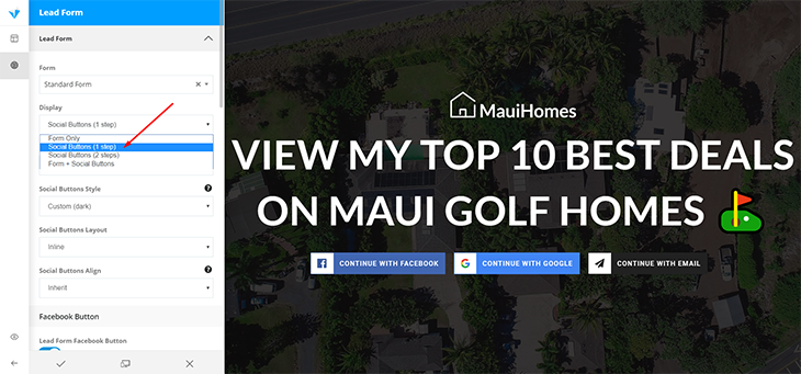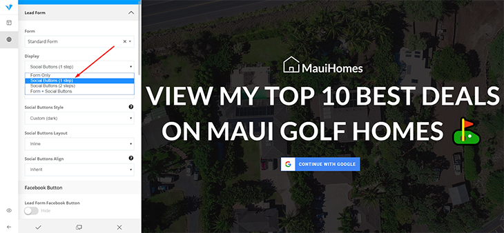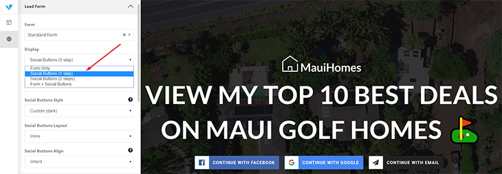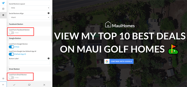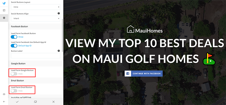 În câțiva pași simpli, formularele dvs. de clienți potențiali pot fi comutate pentru a maximiza conversiile în funcție de locul în care vă desfășurați marketingul. Deși vă recomandăm să includeți toate cele 3 metode de opțiune (Facebook, Google și e-mail), care este setarea implicită - dacă executați marketing direcționat și știți că tot traficul dvs. provine dintr-o sursă individuală (cum ar fi Facebook sau Gmail Marketing), vă recomandăm să profitați de posibilitatea de a comuta formularele de clienți potențiali pentru a afișa doar acele metode de conectare pentru a crește și mai mult conversiile!
