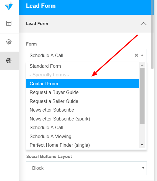 Navigați la Afișare în fila Formular de clienți potențiali și selectați Butonul social (1 pas):
